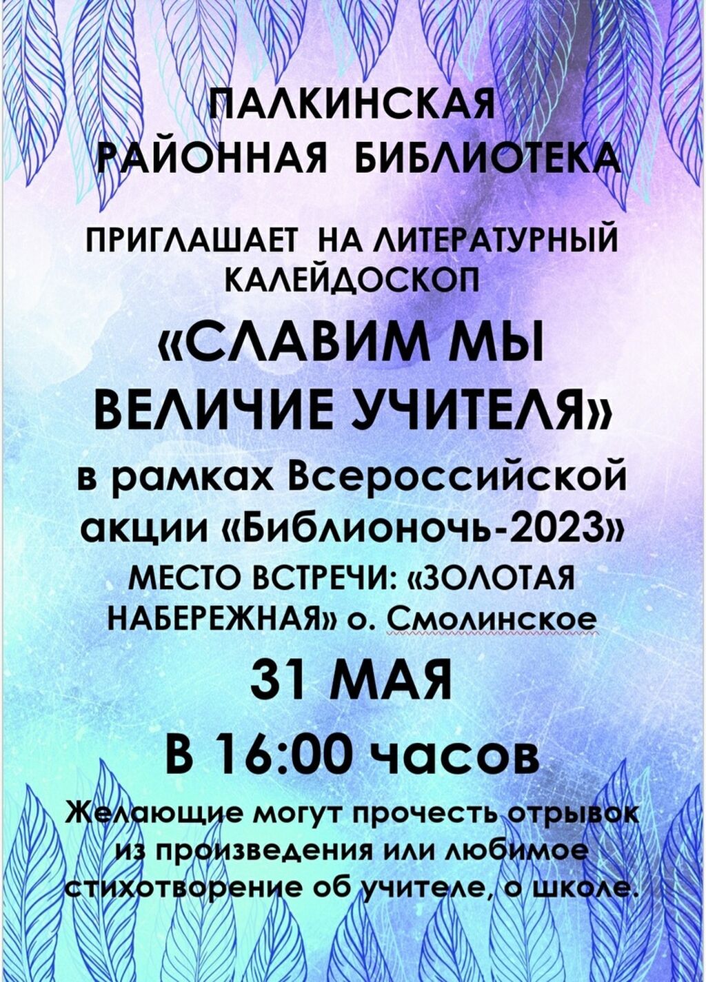 На набережной озера Смолинского состоялся литературный калейдоскоп "Славим мы величие учителя".