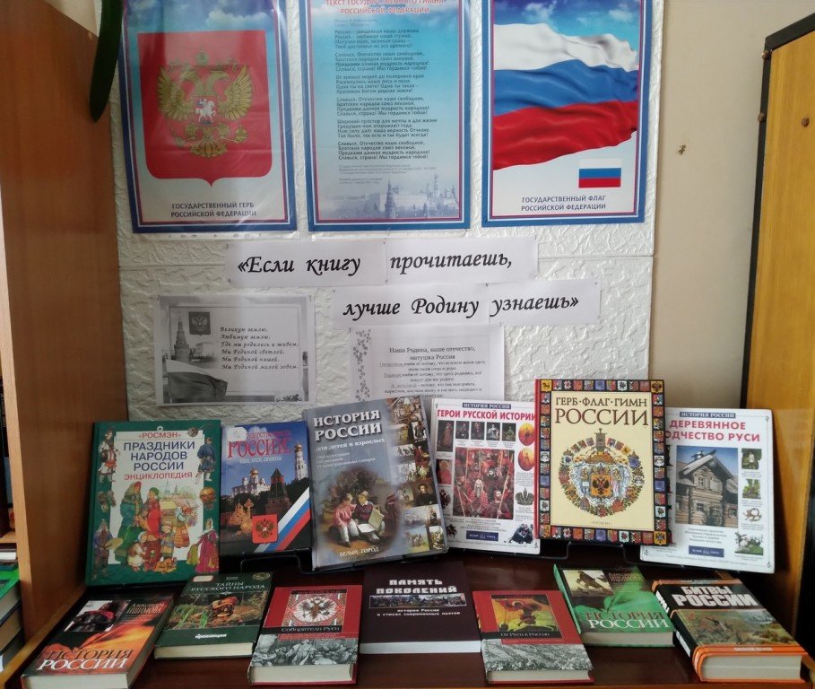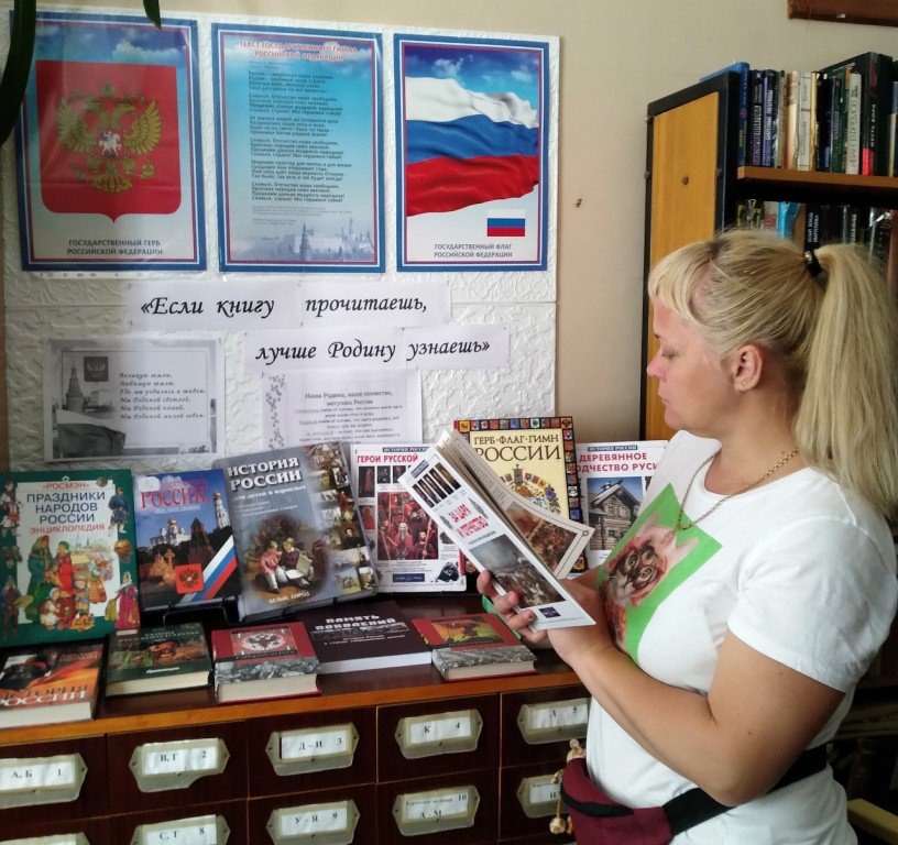 Государственному празднику - Дню России посвящена в Черской сельской библиотеке выставка-обзор «Если книгу прочитаешь, лучше Родину узнаешь».
