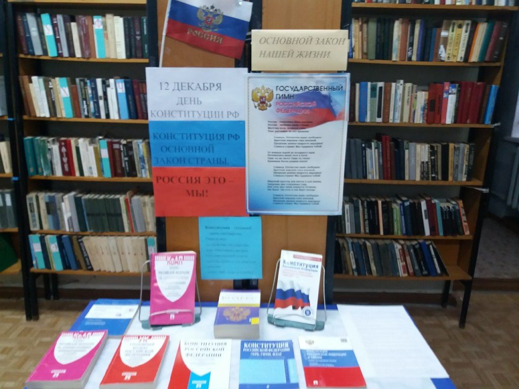В районной библиотеке и Слопыгинской сельской библиотеке - филиале к этой дате оформлены книжные выставки "Основной закон России" и "Основной закон нашей жизни", рассчитанные на широкий круг читателей и содержащие материалы об истории создания Конституции, основах конституционного строя. На выставках представлены книги и справочные издания, посвященные конституционному праву, истории государства, государственной символике России и истории создания Конституции. Целями выставок являются: формирование представления о важности соблюдения законов государства, формирование активной гражданской позиции и правового сознания, приобретение навыков правовой культуры, развитие гражданской инициативы и гражданской ответственности.